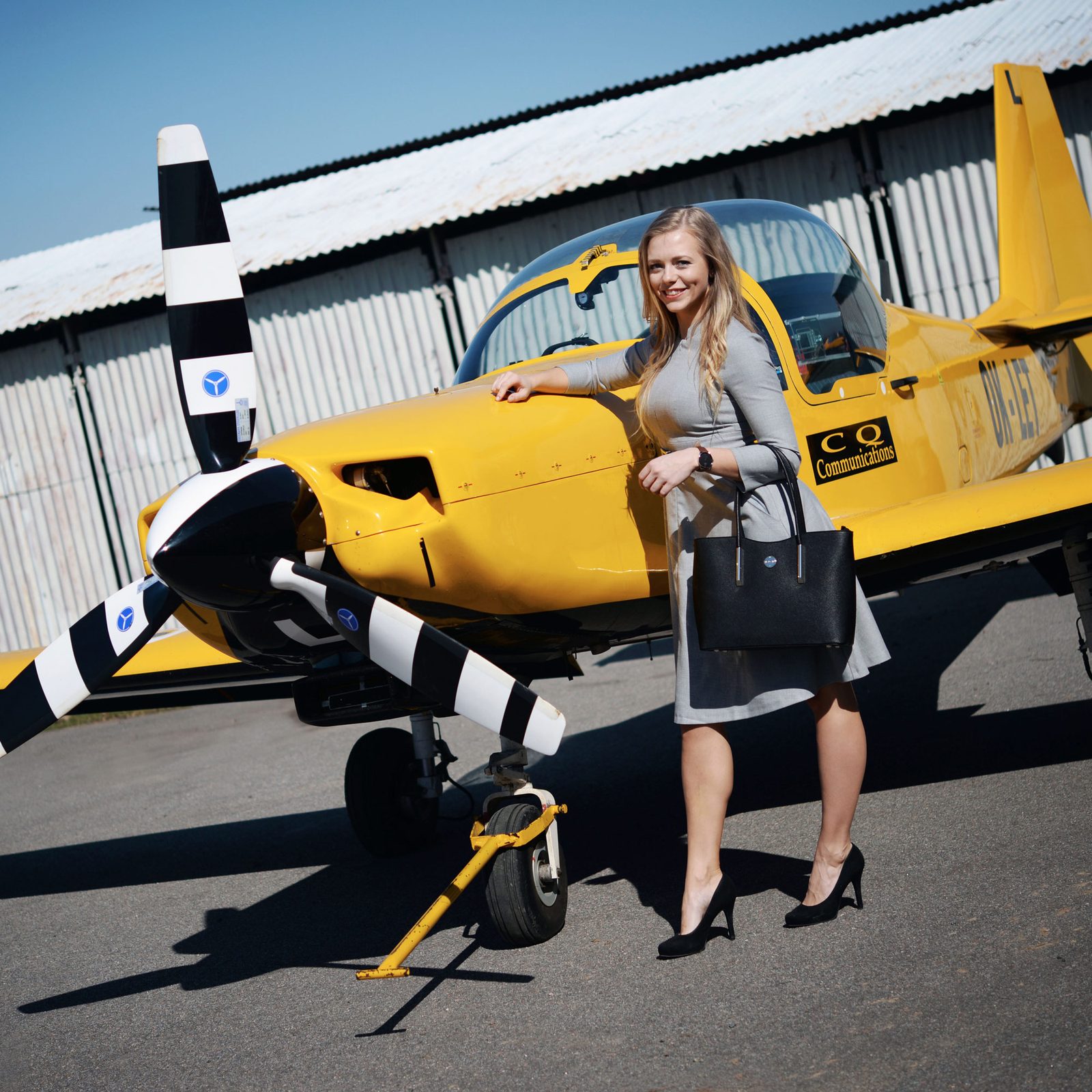 Make-up byl hotový, vyladěný outfit připravený, na scénu přišly hlavní hvězdy – kabelky Wraith, Skyent, Maranella a Miglia! Všichni zúčastnění zvládli ateliérové fotky na jedničku a mohlo se pokračovat o pár kilometrů dál, na chrudimském letišti.