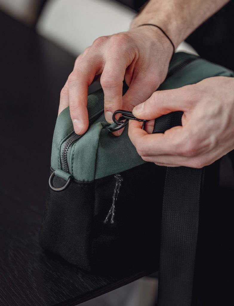 | Vlastnosti | Odolný materiál, Skrytá kapsa, Dlouhý popruh přes rameno |