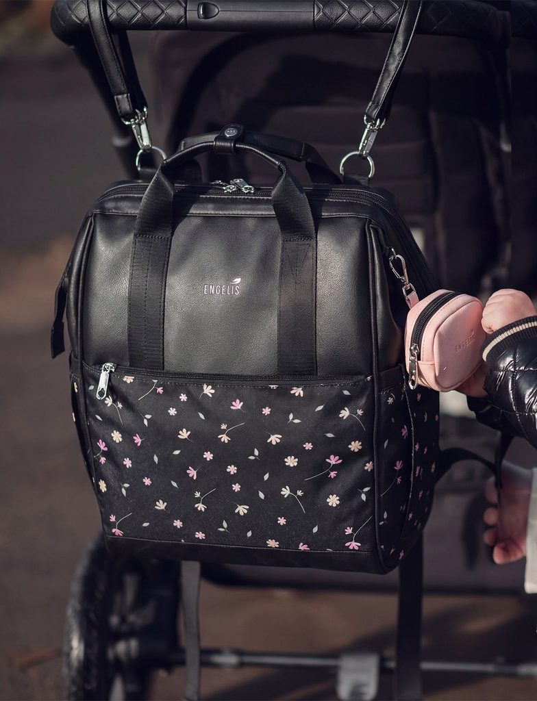 Eloa Flowers Black prostorný batoh na kočárek Engelis
