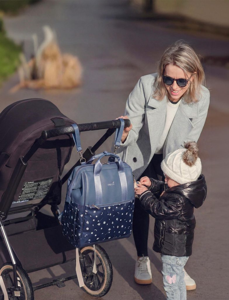 Eloa Flowers Blue prostorný batoh na kočárek Engelis