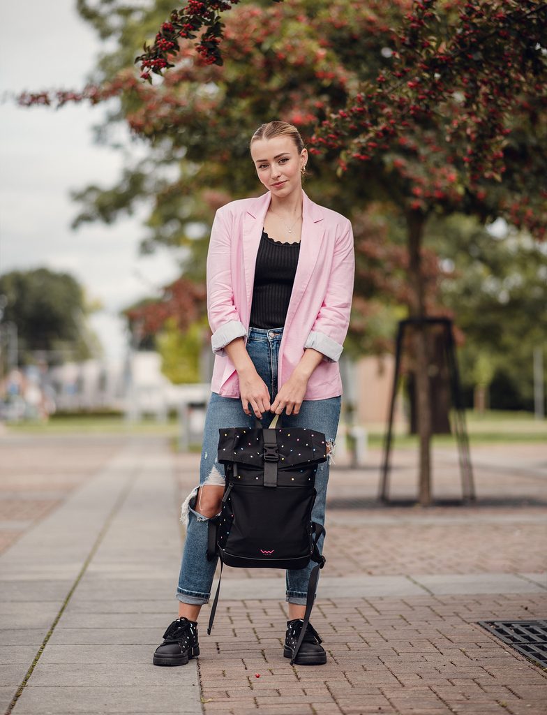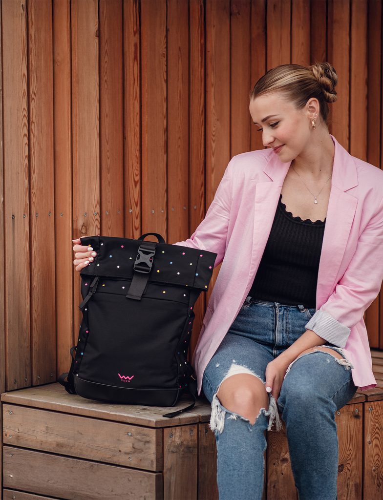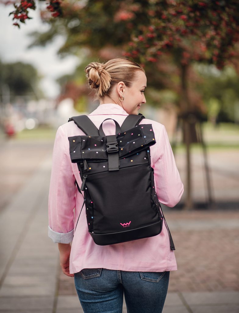 Více informacíAť už máš v plánu projít centrum nebo lesní stezku, tenhle puntíkatý batoh s Tebou bude držet krok. Díky roll-top zavírání se přizpůsobí tomu, kolik toho zrovna potřebuješ. Nechybí ani pohodlné popruhy a dostatek prostoru včetně přední kapsy. Tak co, na rozhlednu, nebo do města?