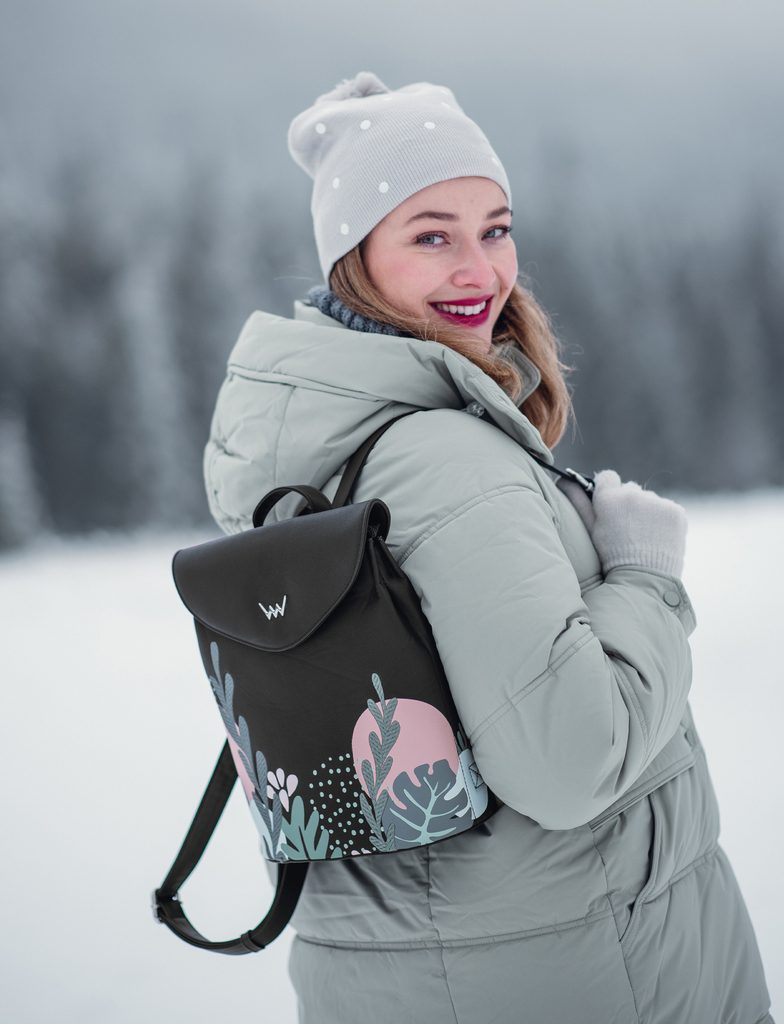 Linton Desert Black batůžek s květinovým potiskem a výšivkou