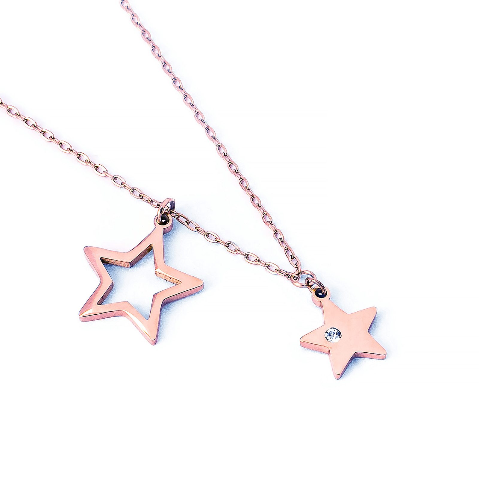 „Že tě vždycky fascinoval pohled na noční oblohu posetou hvězdami? Pak je právě pro tebe jako stvořený náhrdelník v barvě rose gold, kterému vévodí dvě hvězdy. Vzít si ho můžeš třeba na večírek.“