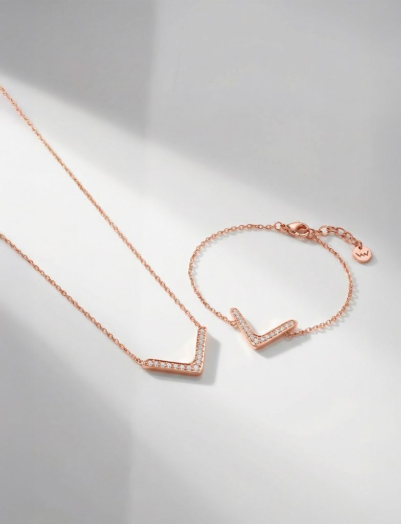 Náramek s jemným řetízkem a třpytivým prvkem ve tvaru „V“ je stylový detail, který neříká moc – ale řekne přesně to, co má. Elegantní, čistý a snadno kombinovatelný. Ať…