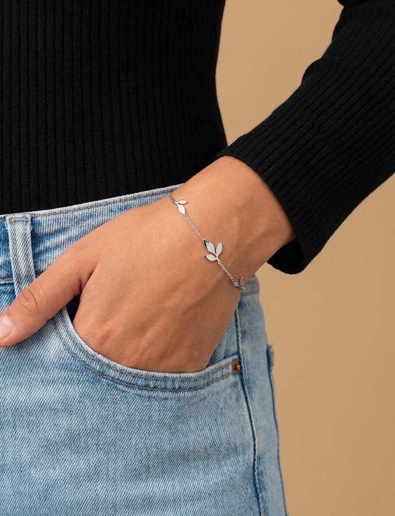 Náramek Gleam Silver řetízkový náramek s motivem lístků