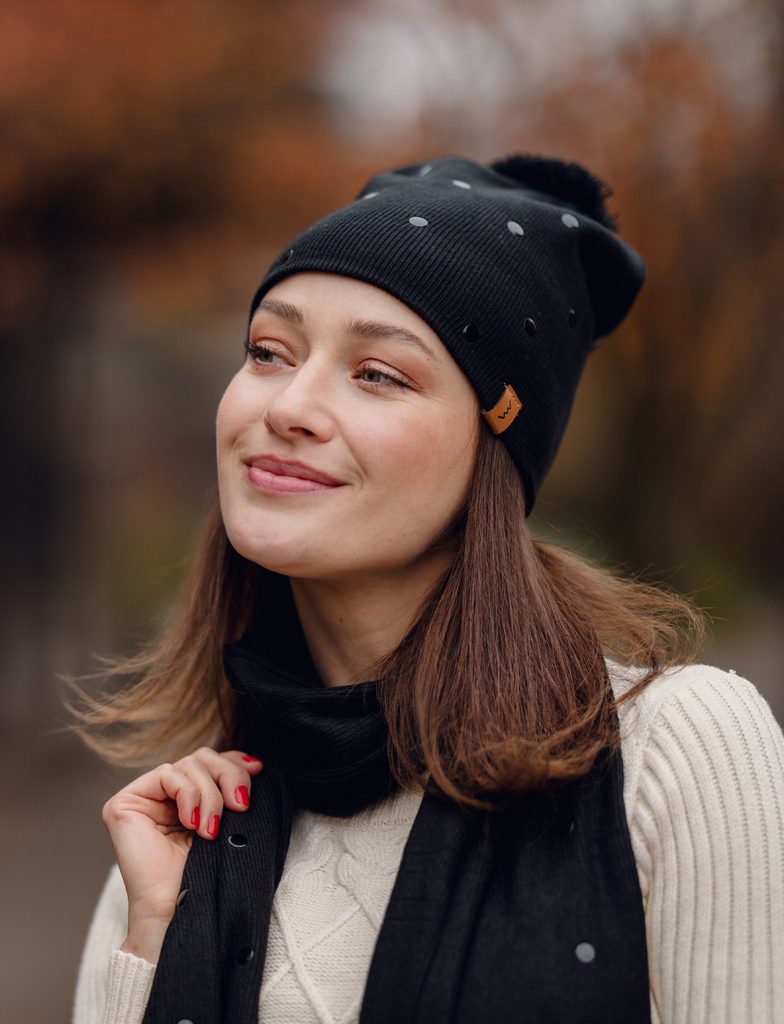 Nurit Black čepice s bambulkou a puntíky