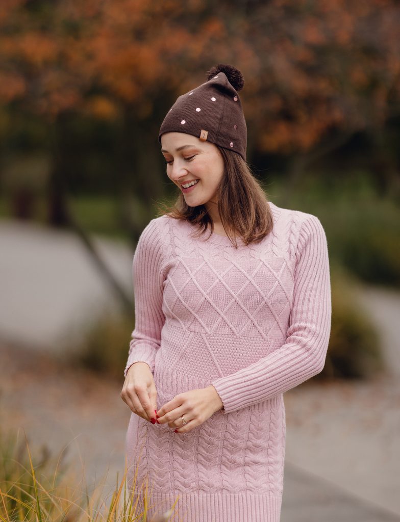 Nurit Brown čepice s bambulkou a puntíky