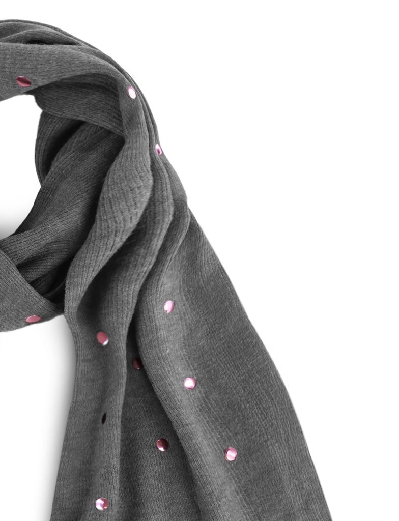 Nurit SC Grey pletená šála s puntíky a koženým logem