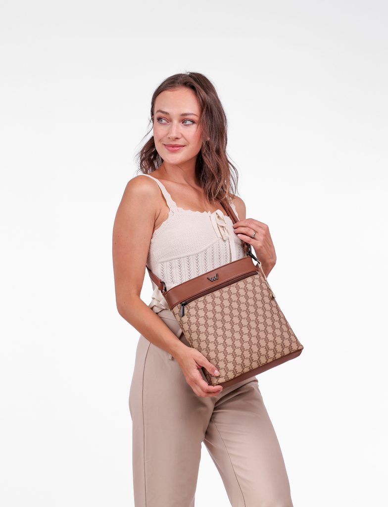 Carlene Brown velká crossbody kabelka na zip