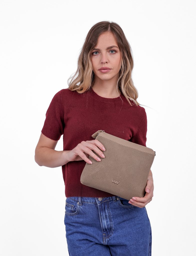 Coalie Knit Beige crossbody kabelka s perforováním