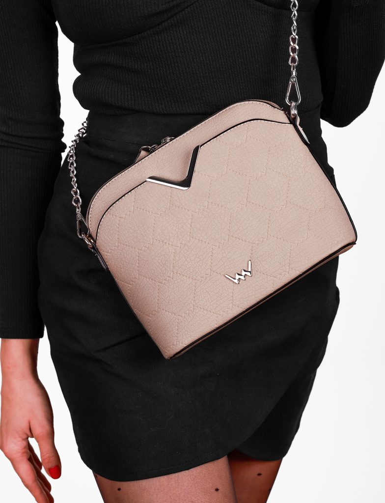 Fossy Beige elegantní crossbody kabelka s řetízkem