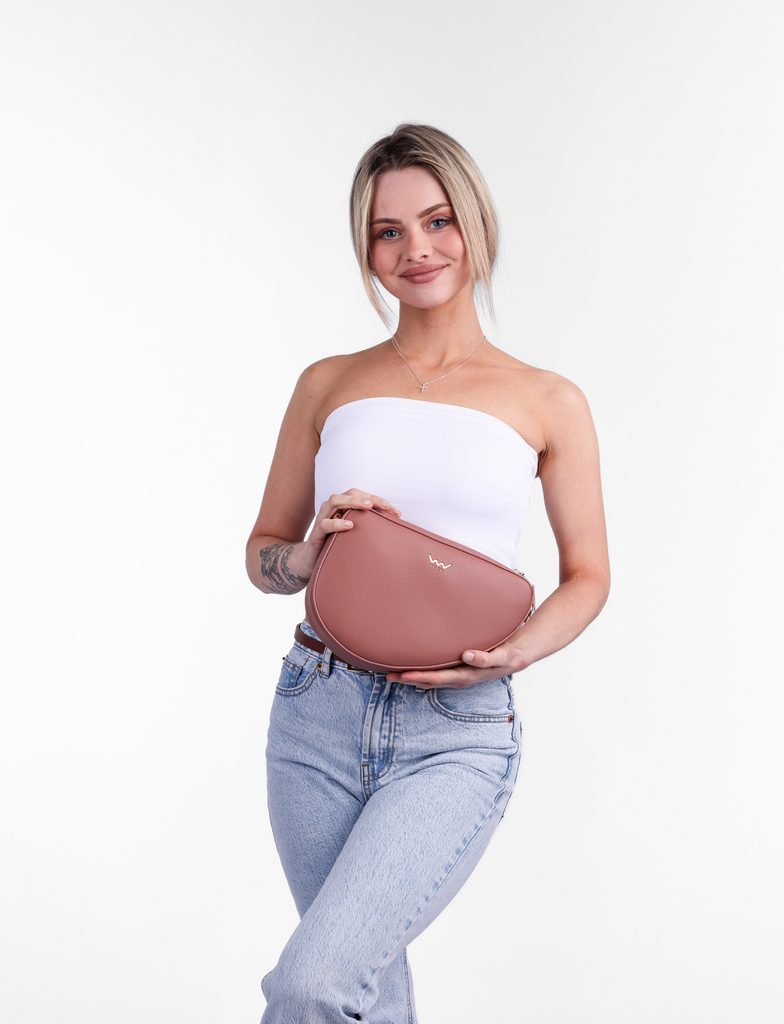 Larrel Dusty Pink asymetrická crossbody kabelka na zip