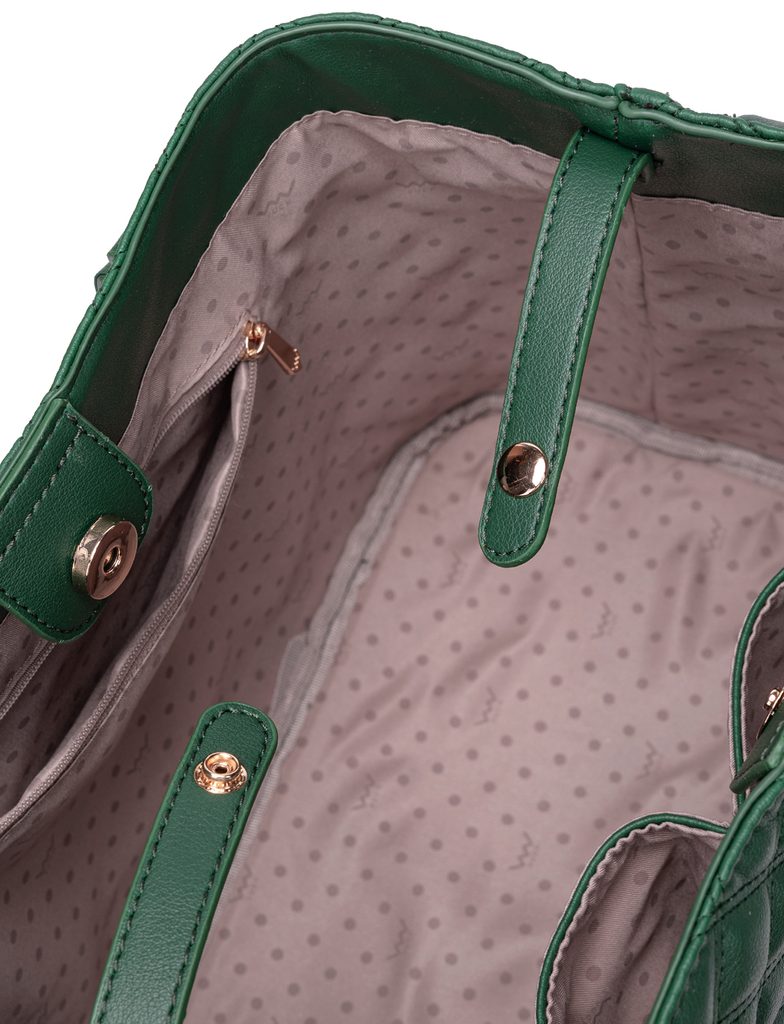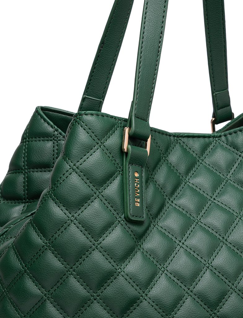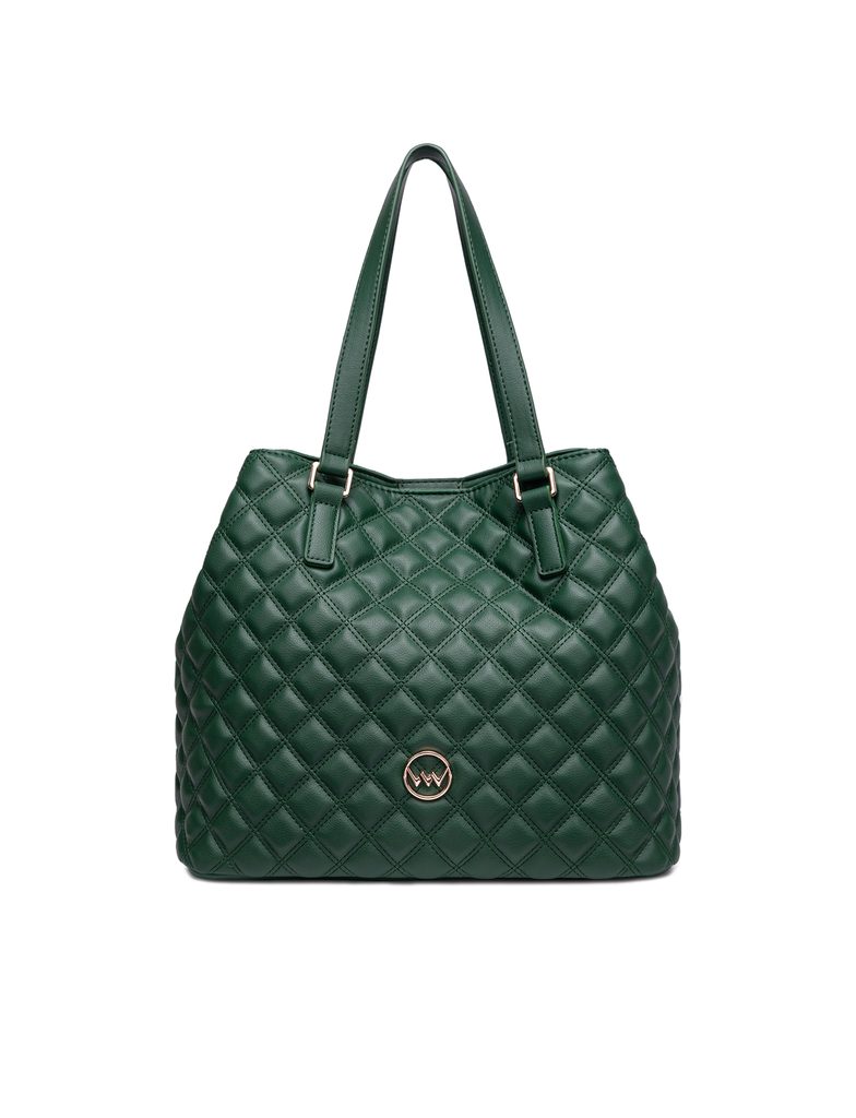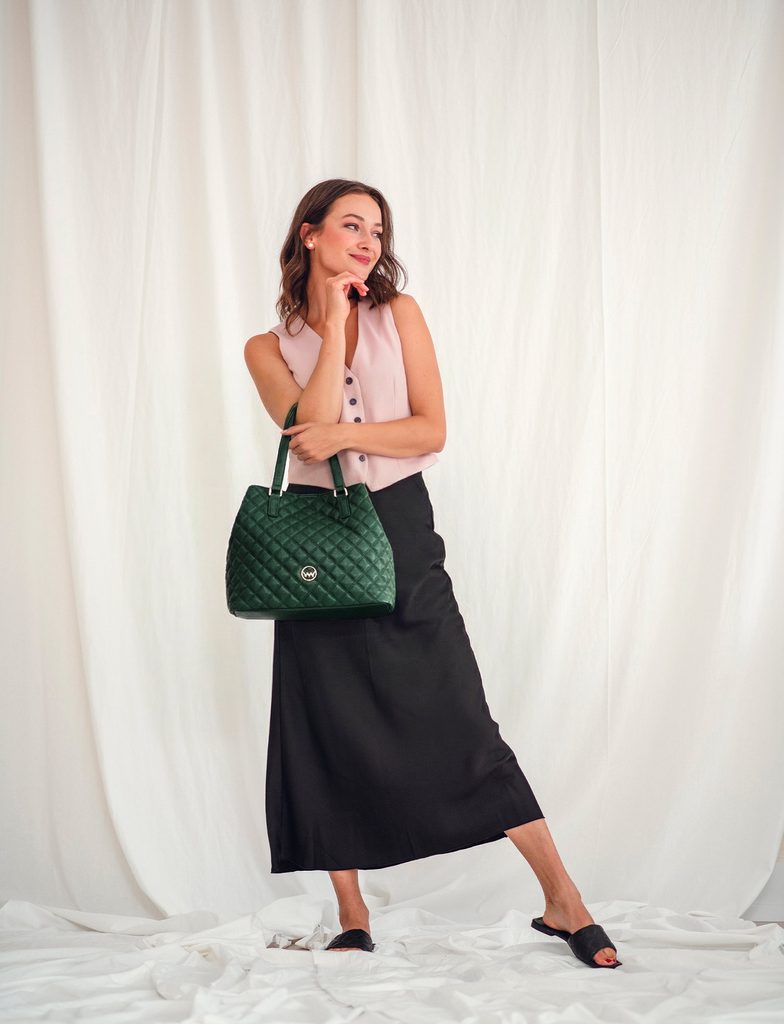 Roselda Classy Green prošívaná kabelka s kosmetickou taštičkou
