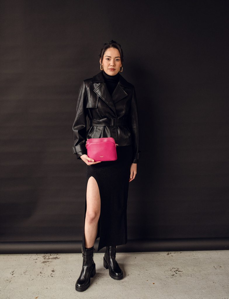 Fossy Mini Grace Raspberry Pink malá crossbody kabelka z italské hovězí kůže