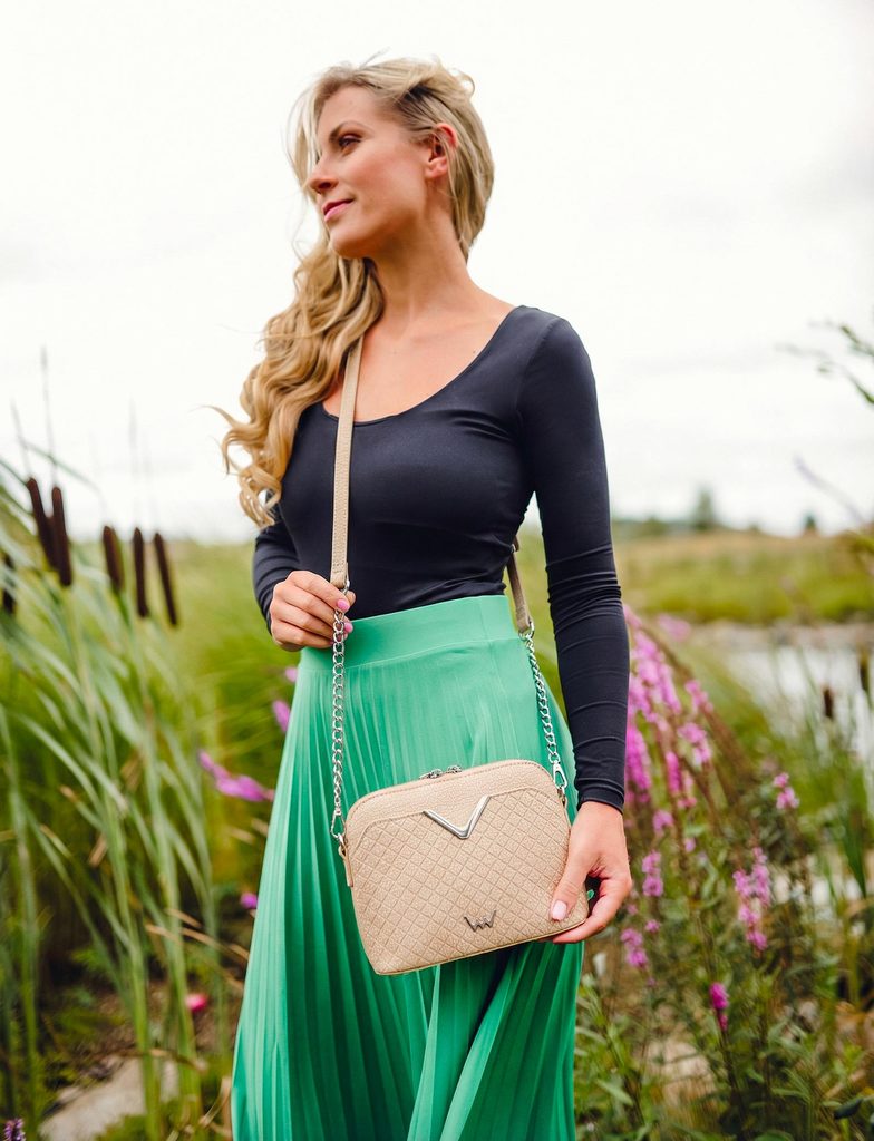Fossy Mini Beige malá crossbody kabelka s řetízkem