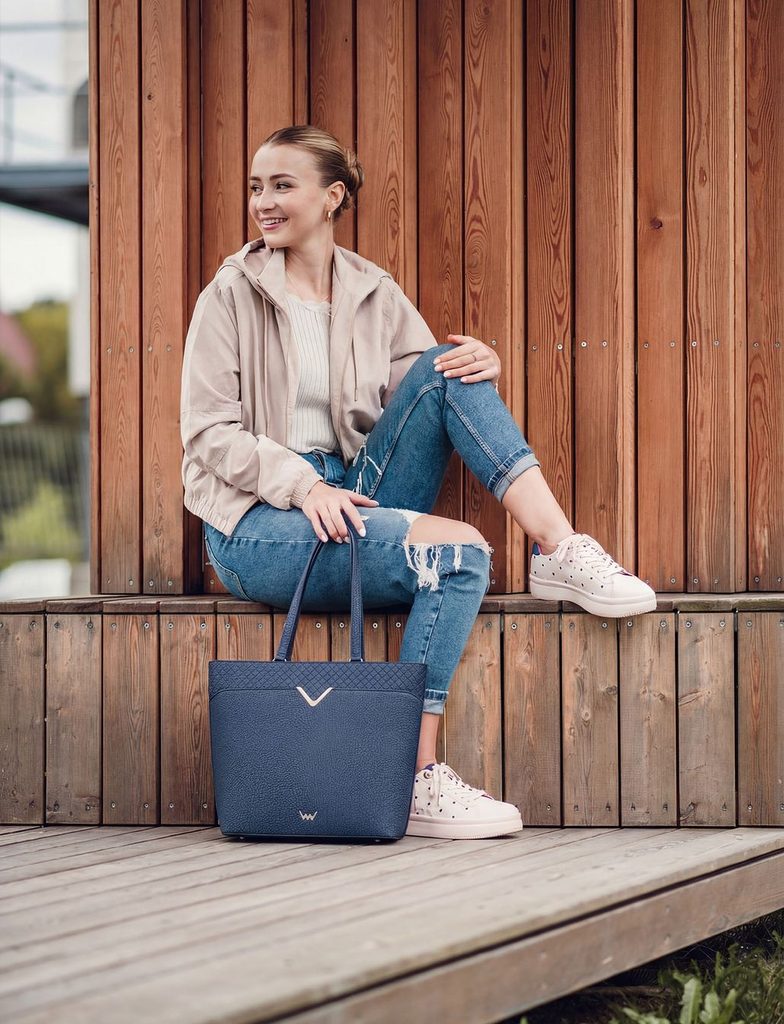 Neela Big Blue velká prostorná kabelka na zip