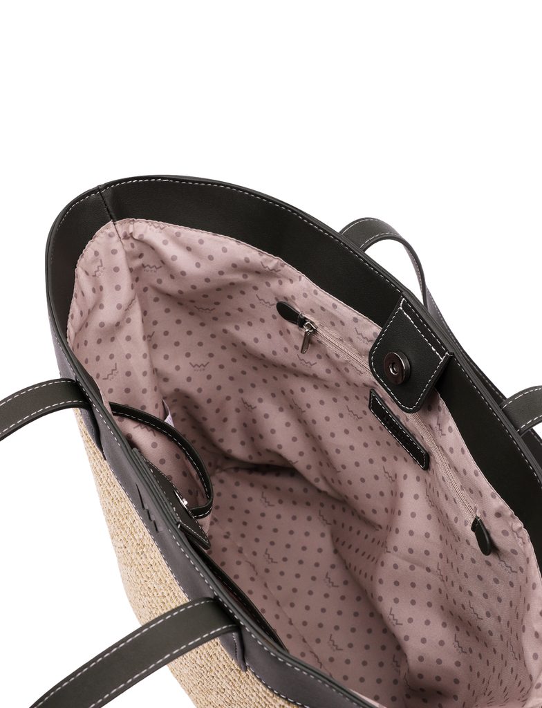 Velká taška s vůní léta. Tento model v sobě spojuje lehkost rafie a eleganci detailů z koženky. Je to taška pro dny, kdy se nespokojíš s málem. S lehkostí unese knihu,…