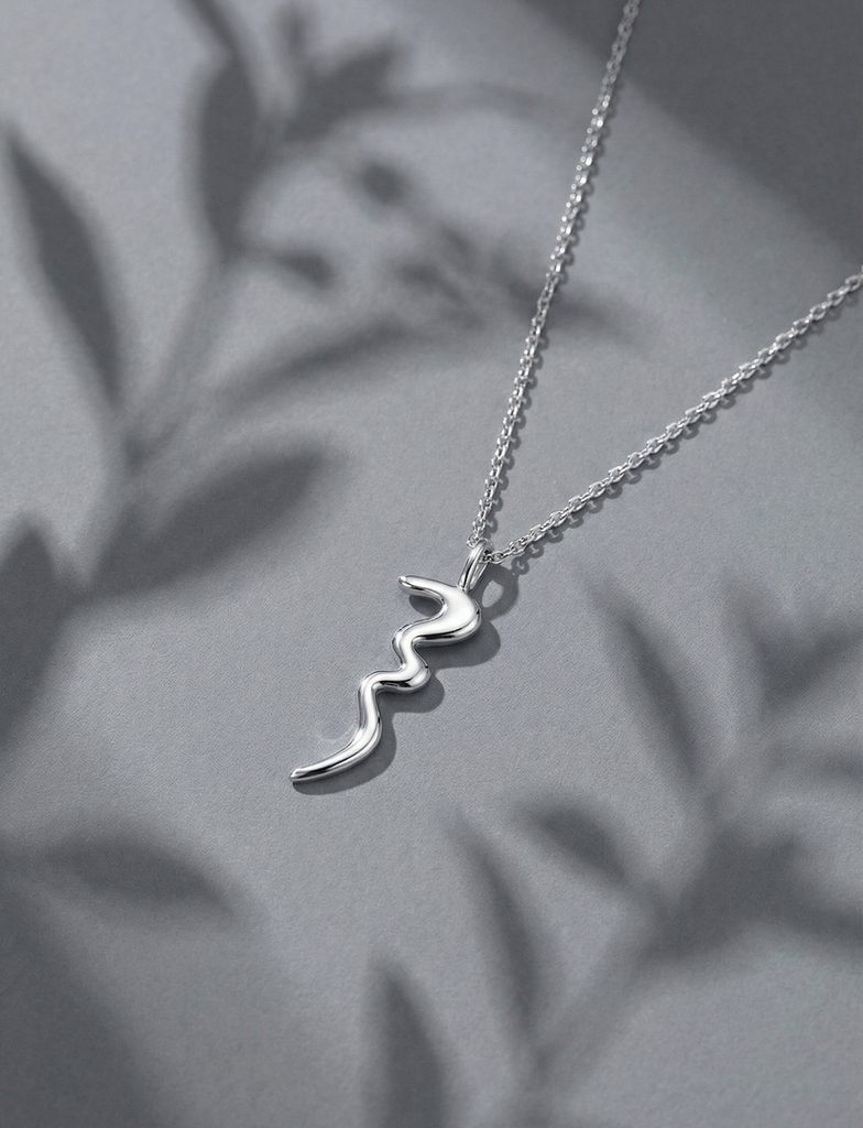 Design decentního stříbrného náhrdelníku z kolekce Laboratory od Adély Pečlové vychází ze stejného tvaru jako náušnice CLAREA této kolekce, inspirované stylizací loga…