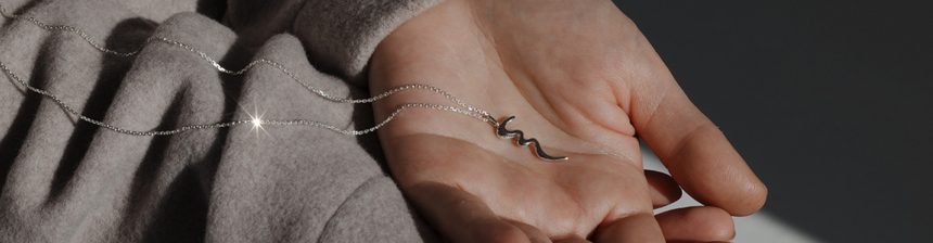 Design decentního stříbrného náhrdelníku z kolekce Laboratory od Adély Pečlové vychází ze stejného tvaru jako náušnice CLAREA této kolekce, inspirované stylizací loga…