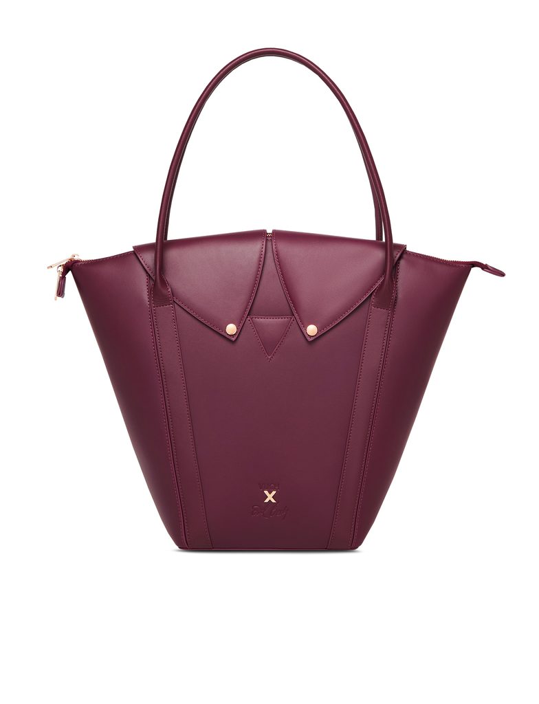 Tato větší verze kabelky z kolekce Laboratory - Mezi světy je navržena pro každodenní rytmus města. Díky pevnému tvaru a velkému vnitřnímu prostoru se do ní vejde všechno, co potřebuješ – notebook, kosmetika i diář. Zapínání s klopou ve tvaru košilového límce dodává kabelce elegantní a mírně formální výraz, ale zůstává měkce ženská. Jemně vyražený motiv „Vuch × Pavel Berky“ ve tvaru X symbolizuje křižovatku – volbu mezi směry, kterou každá žena dělá po svém.