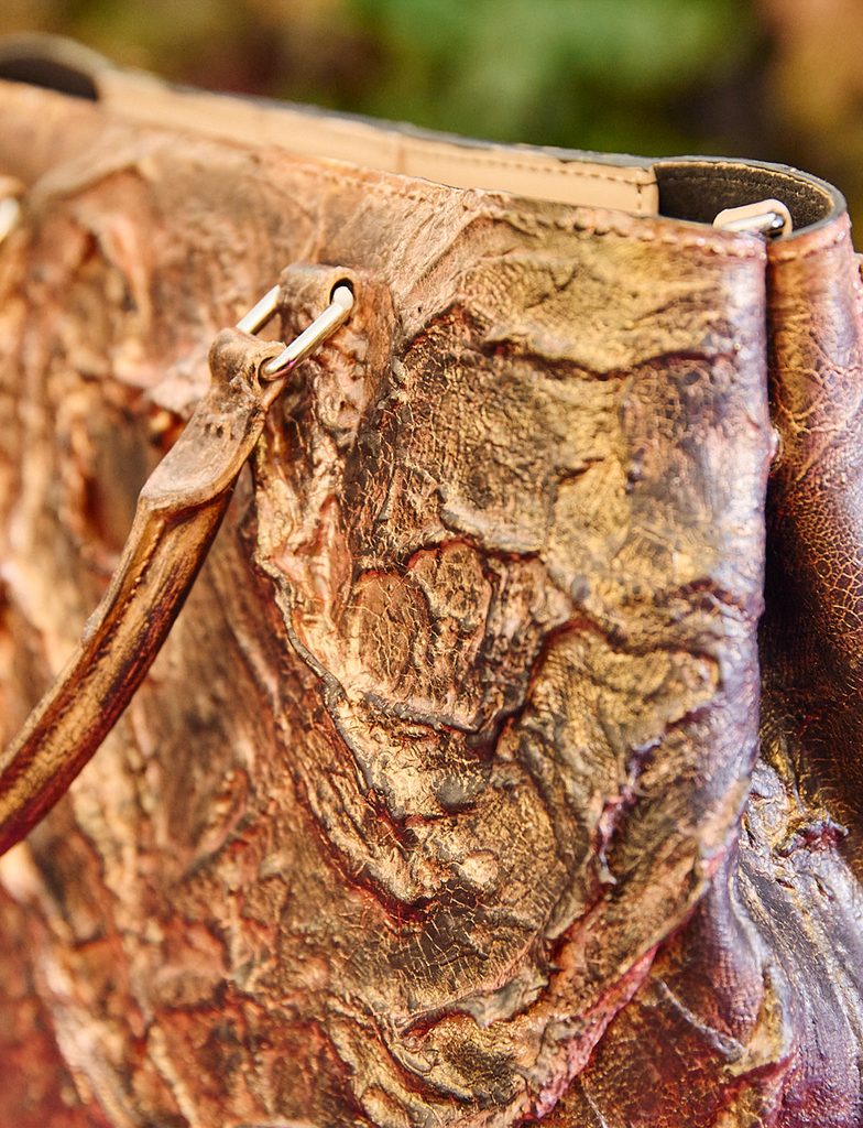 Více informacíKabelka, která přistupuje k designu jako k uměleckému objektu. Pod vrstvami struktur a zlatavých tónů se skrývá kabelka z pravé kůže, jejíž povrch odráží energii a drama, podobně jako odlesky slunce na podzimním listí. Hravé kombinace barev a textur dávají každému pohledu novou perspektivu a vytvářejí dojem pohybu a živosti. Výsledkem je kousek, který působí dramaticky i přirozeně zároveň.