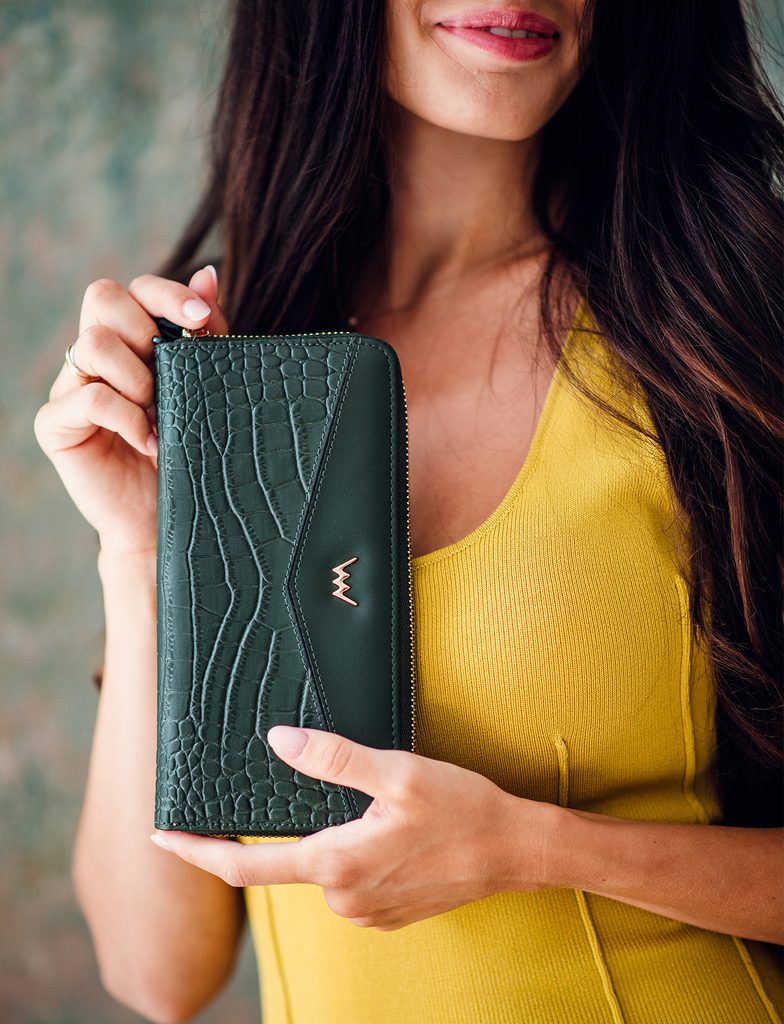 Keryth Green velká kožená peněženka na zip