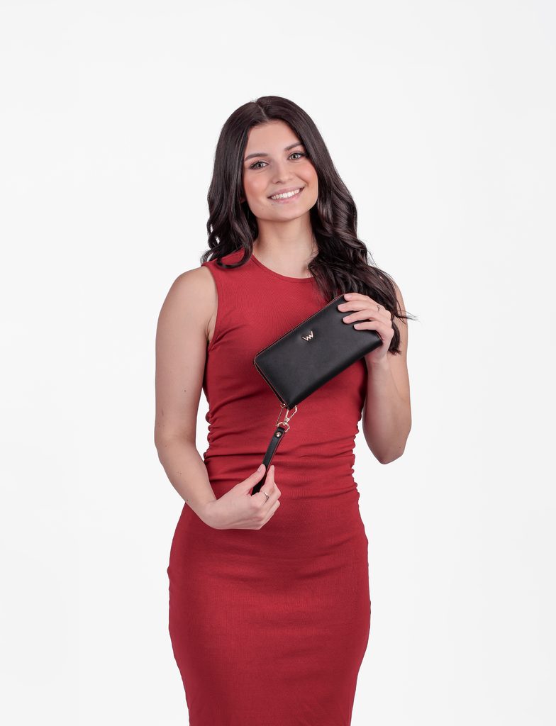 Rodriga Black velká kožená peněženka s poutkem na ruku
