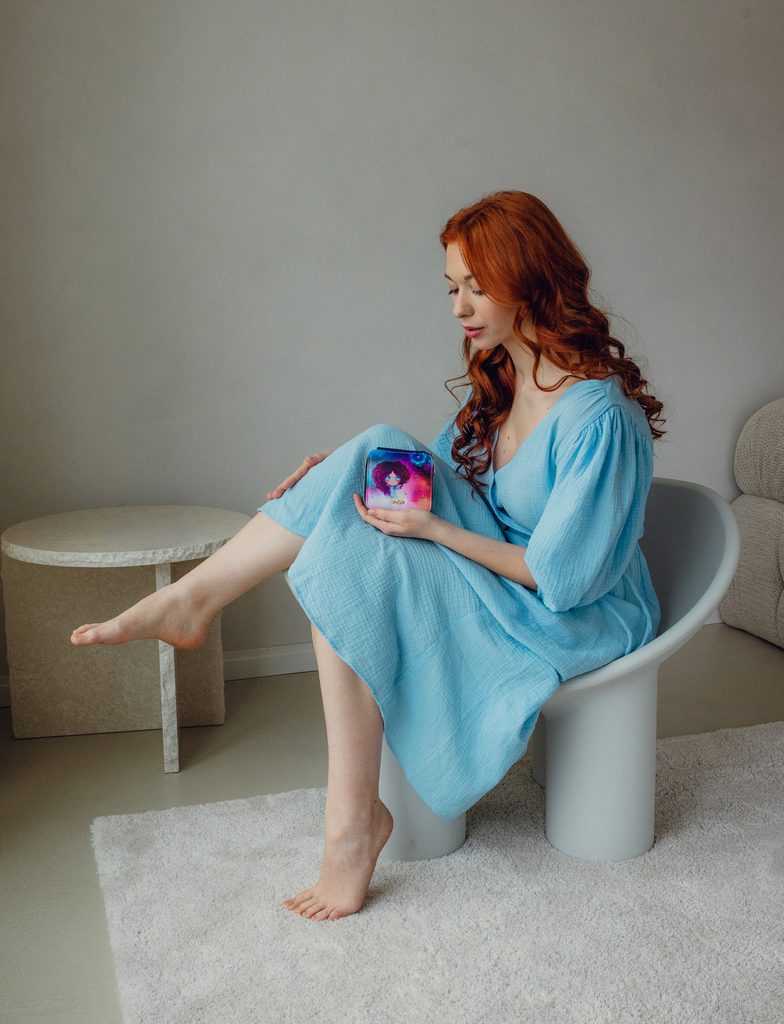 Eveline vidí krásu tam, kde ji ostatní přehlížejí. V každodennosti hledá zázraky a v maličkostech nekonečno. Připomíná Ti, že i v běžném dni můžeš najít kousek vesmíru, stačí se jen podívat výš.