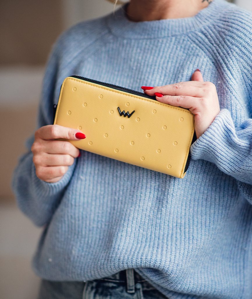 Charis Yellow velká puntíkatá peněženka na zip