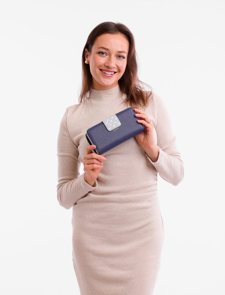 Ineke Dark Blue velká puntíkatá peněženka na patent