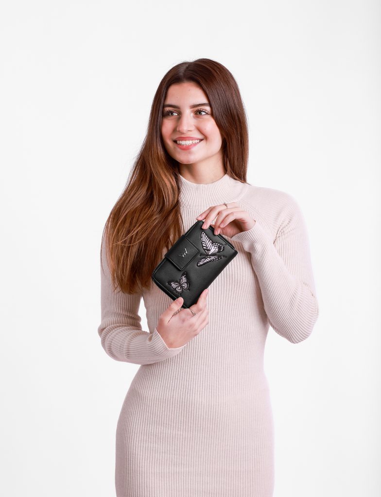 Tali Tammy Chrysalis Black střední peněženka s motýlí výšivkou