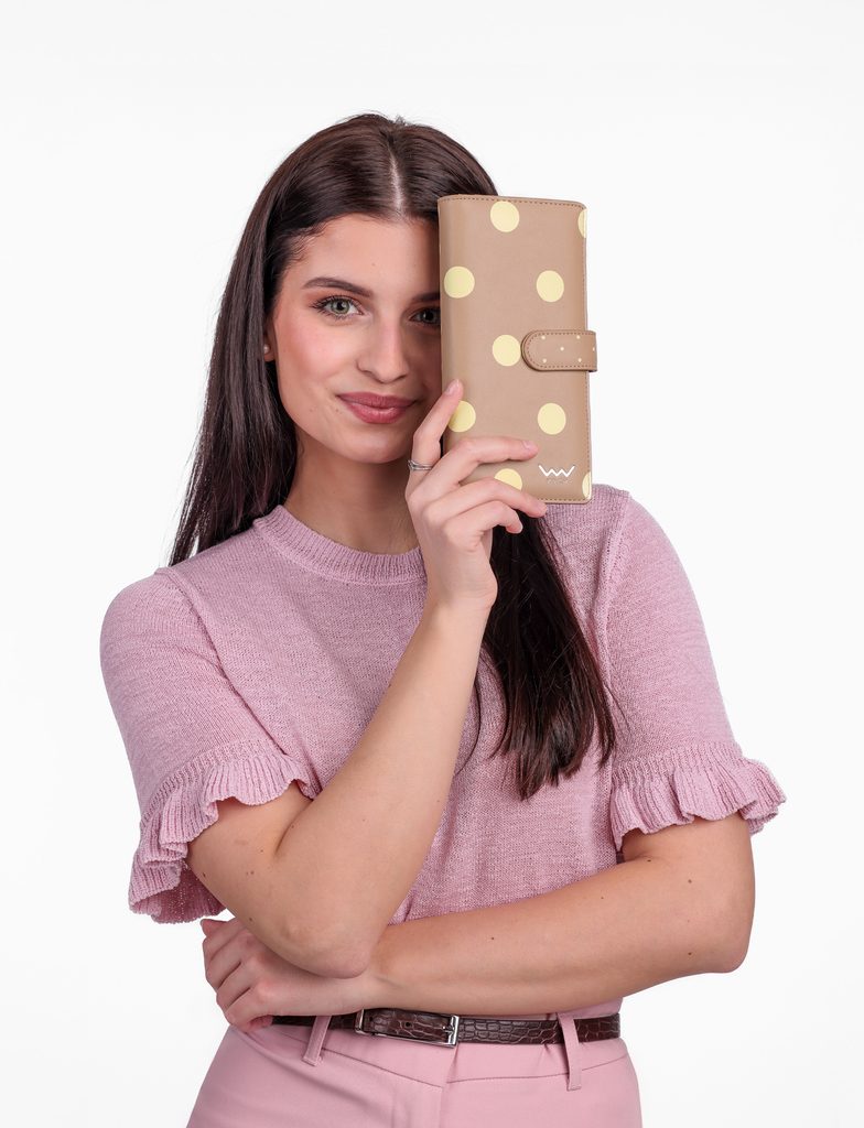 Eleria Beige velká puntíkatá peněženka na patent
