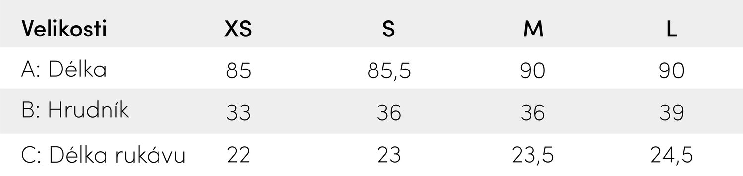 Modelka má 160 cm a 45 kg, na fotografii má velikost XS.