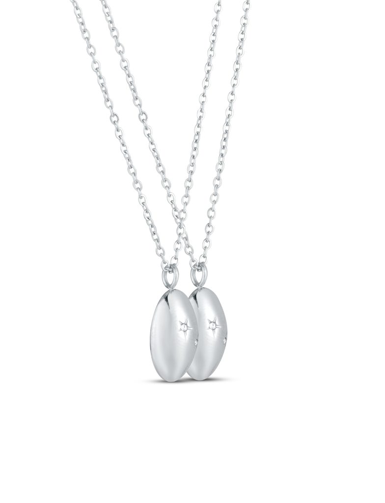 Párový náhrdelník s přívěskem zdobeným krystaly, který má svůj dvojí význam. Jeden pro Tebe, druhý pro někoho blízkého. Minimalistický design nechává vyniknout jemný…