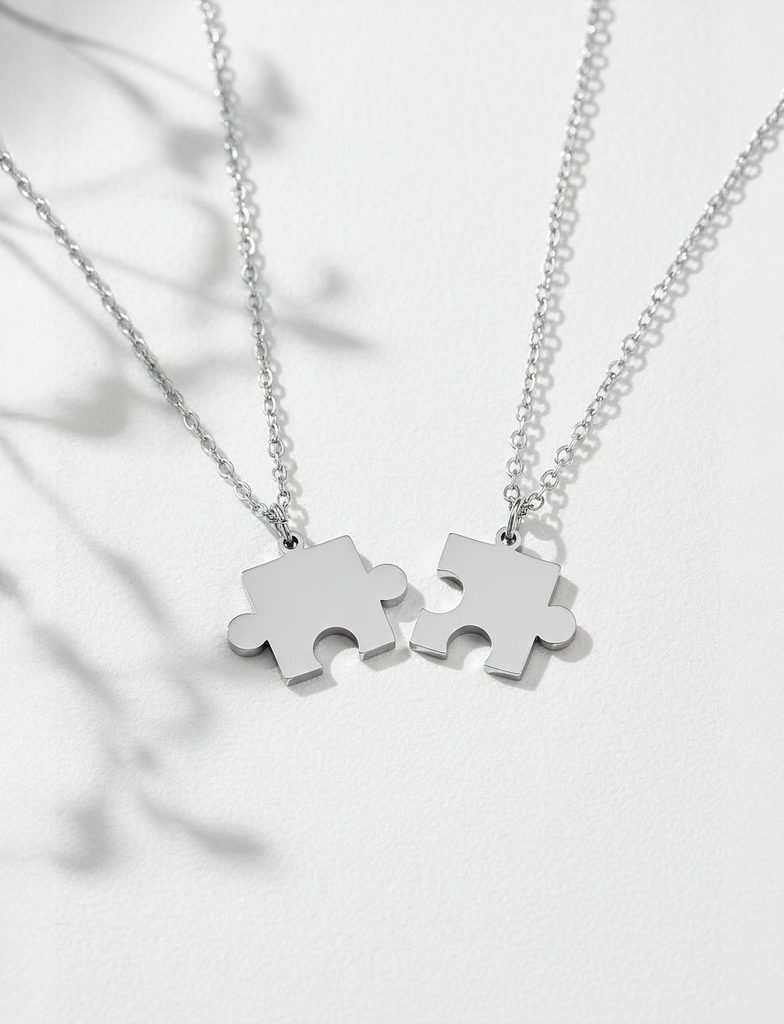 Párové náhrdelníky ve tvaru puzzle, které dávají smysl teprve spolu. Jeden patří Tobě, druhý někomu, kdo je Tvým dokonalým doplňkem. Kamarádce, partnerovi nebo komukoliv…